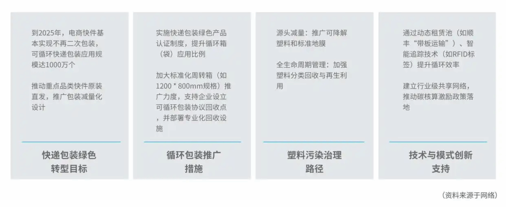 中国“十四五”循环经济发展规划中,与循环包装相关的政策核心聚焦于快递包装绿色转型和塑料污染全链条治理两大方向,具体包括以下关键内容: